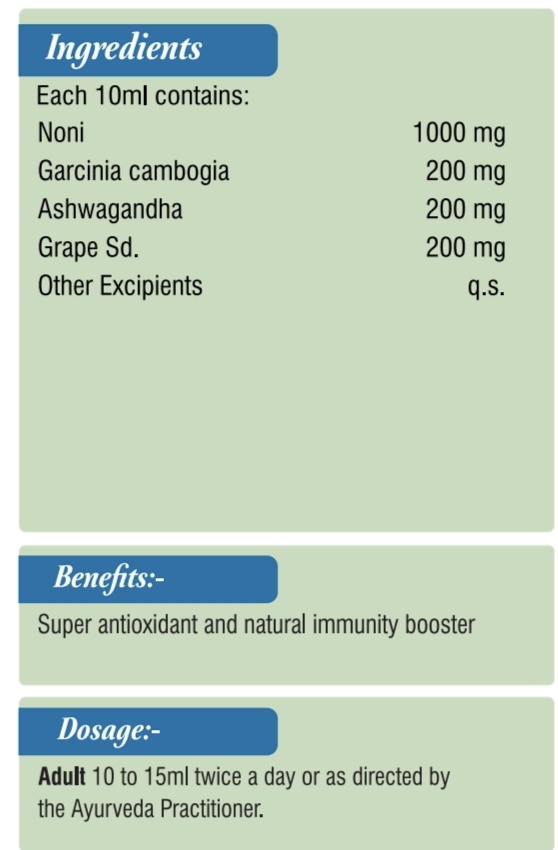 Adult 10 to 15ml twice a day or as directed by the Ayurveda Practitioner.